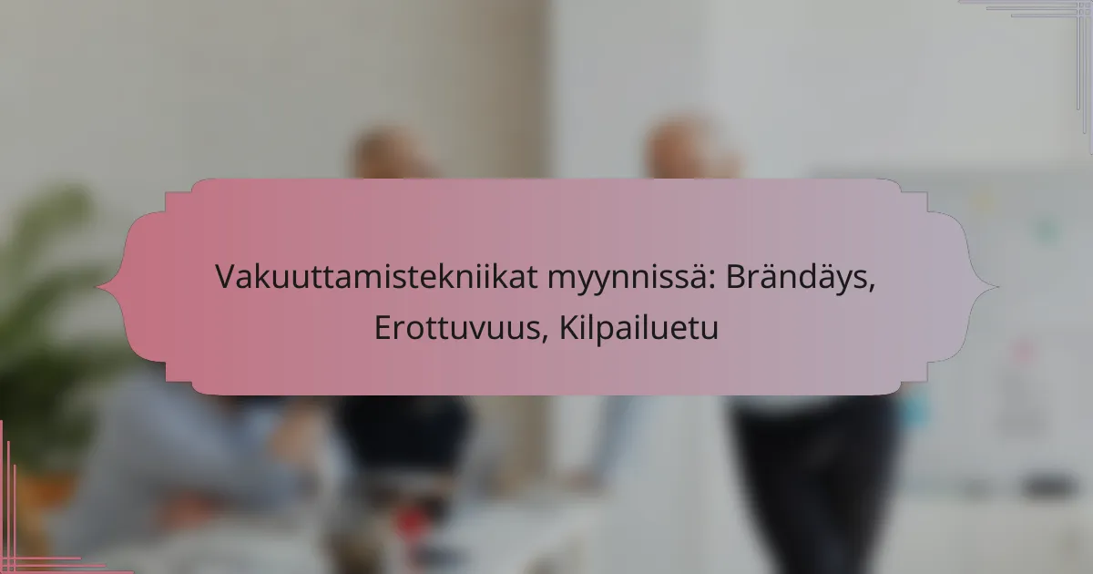 Vakuuttamistekniikoiden keskeiset elementit myynnissä sisältävät brändäyksen, erottuvuuden ja kilpailuedun. Nämä tekijät vaikuttavat suoraan asiakassuhteisiin ja myyntimenestykseen, ja niiden ymmärtäminen on olennaista tehokkaan myynnin kannalta.